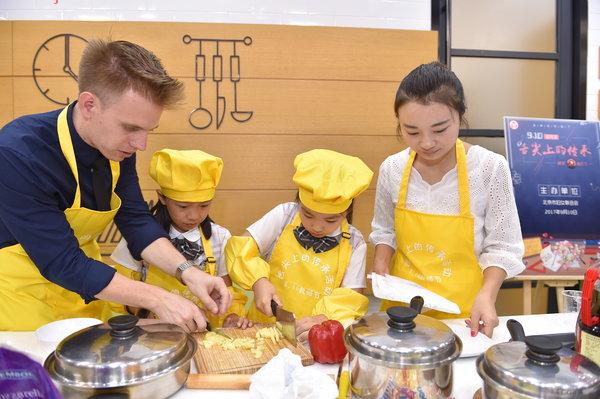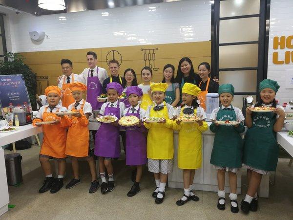 During the activity, eight teachers and eight primary school students were divided into four teams to cook a dish each against the clock. Under the guidance of teachers and chefs, the pupils carefully completed their task.