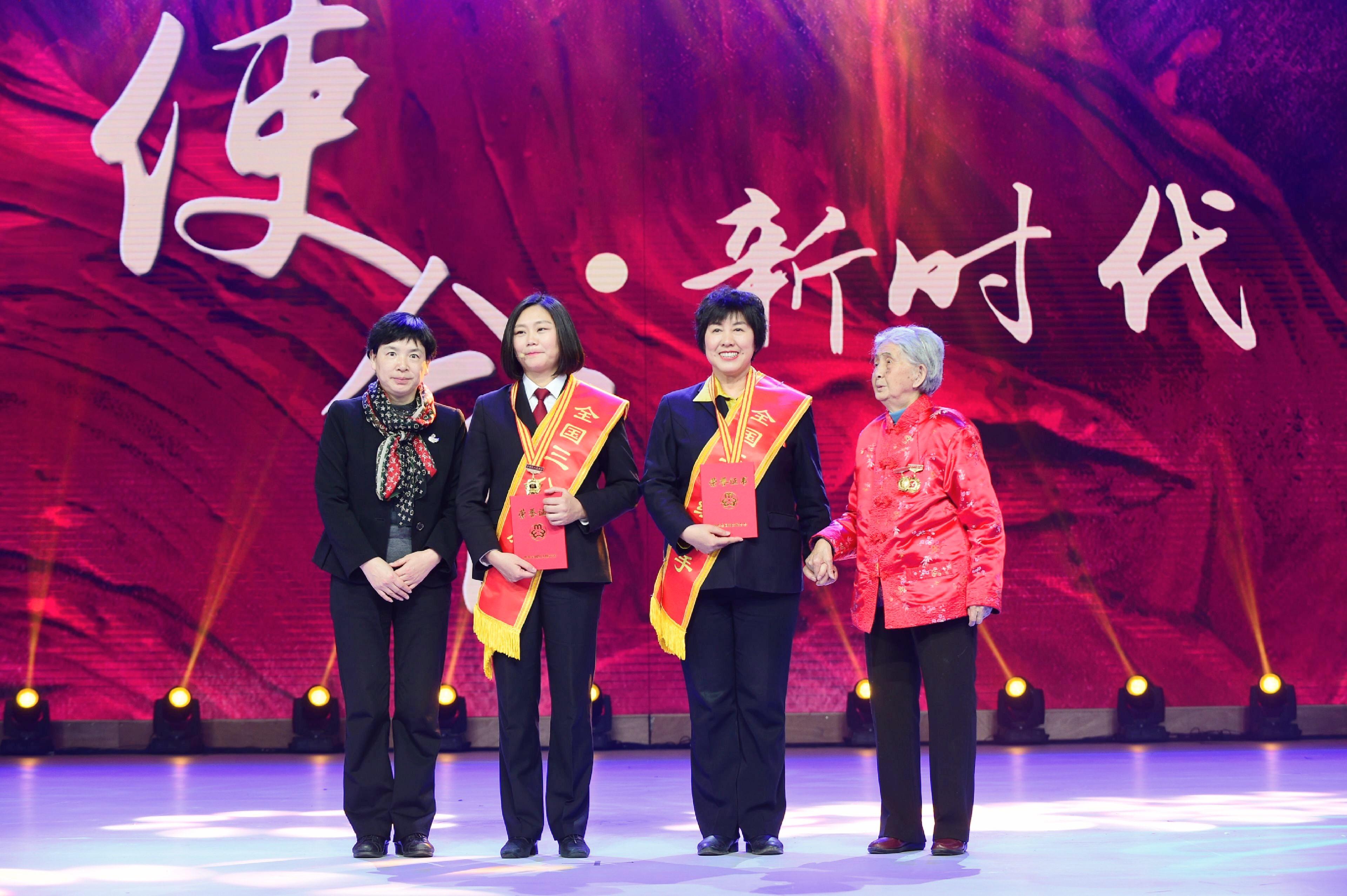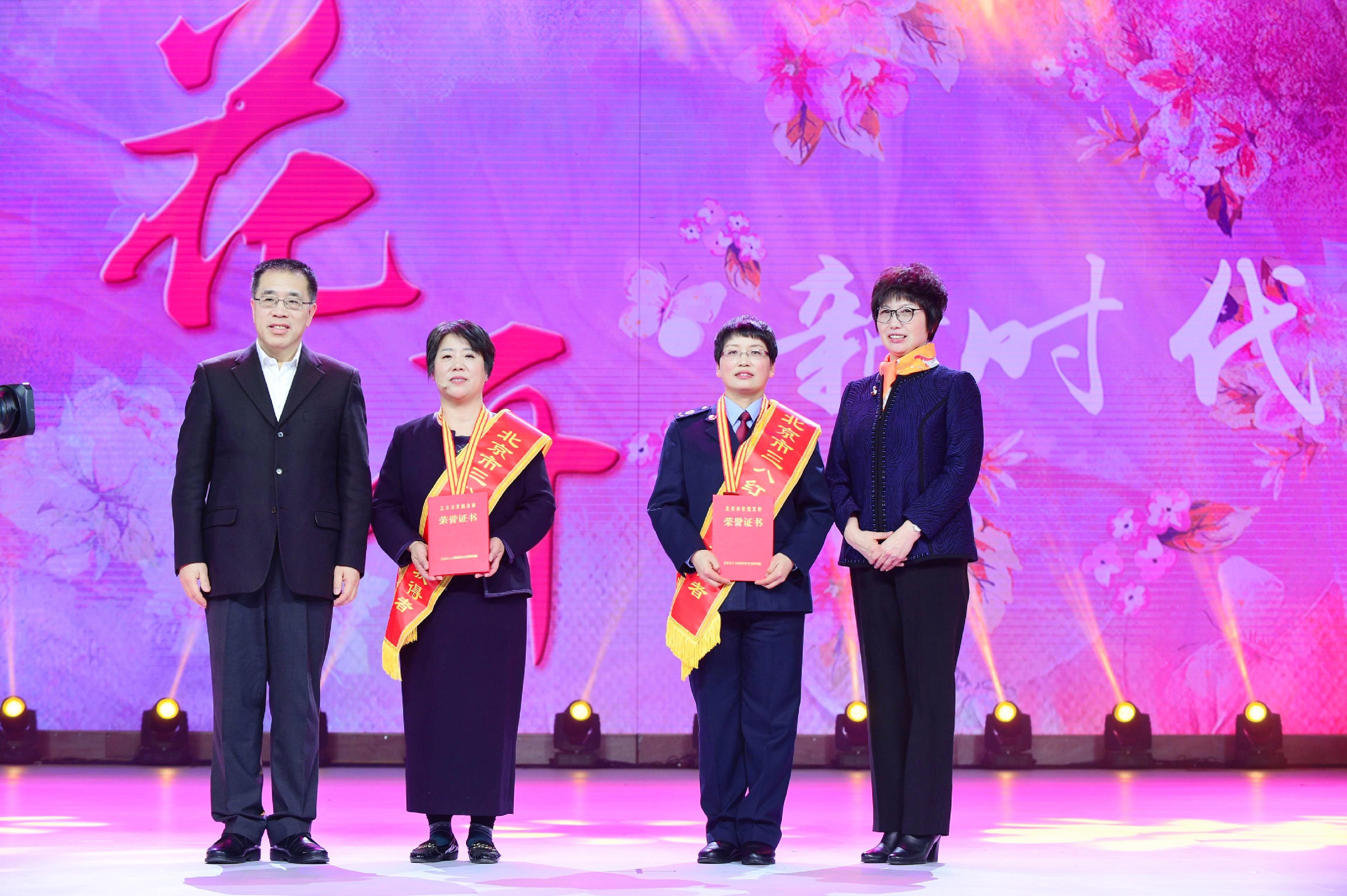 Party secretary and president of Beijing Women's Federation Cai Shumin presented awards to two groups for their services to local women, alongside Liu Hanchen, a representative of the National Civilized Families.