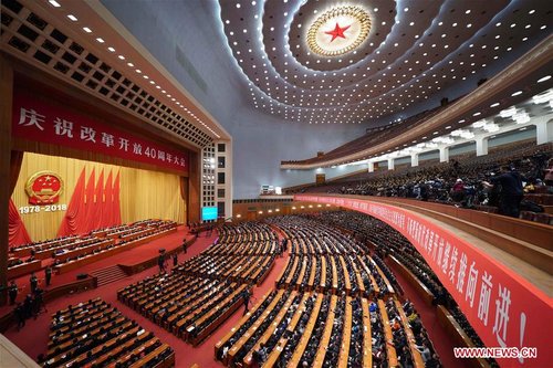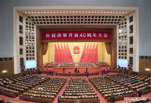 China holds a grand gathering to celebrate the 40th anniversary of the country's reform and opening-up at the Great Hall of the People in Beijing, capital of China, Dec. 18, 2018. [XinhuaWang Ye]