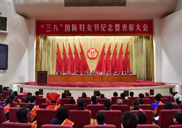 The International Women's Day Commemoration and Commendation Conference is held in the Great Hall of the People, Beijing, on March 6.