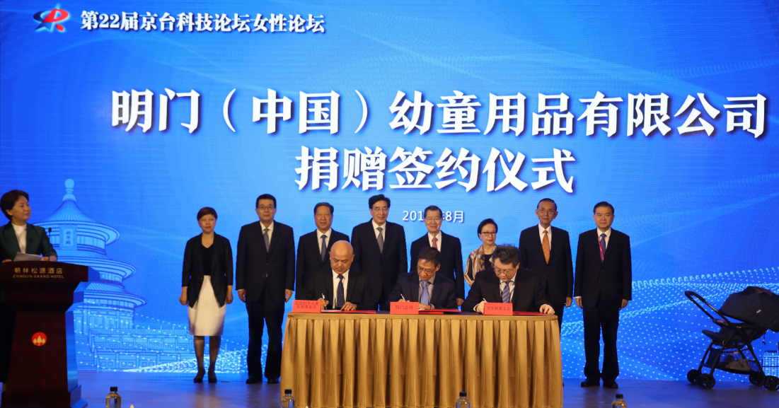 At the forum, the Taiwan-funded enterprise China Wonderland Nurserygoods Co., Ltd. donated 40 containers of child safety products to the China Soong Ching Ling Foundation and 60 containers of products to the Beijing Women and Children's Development Foundation.