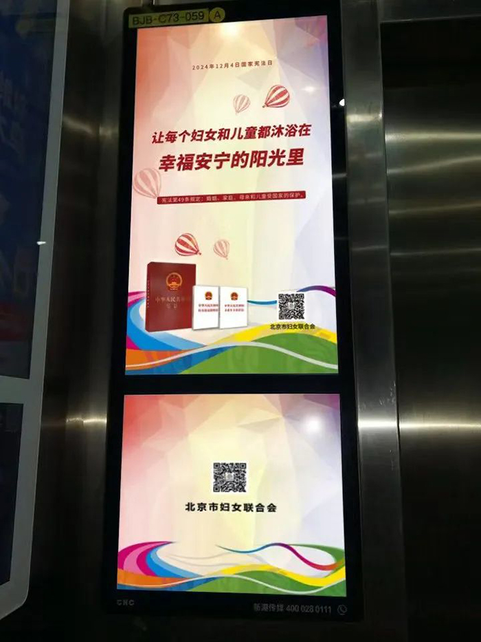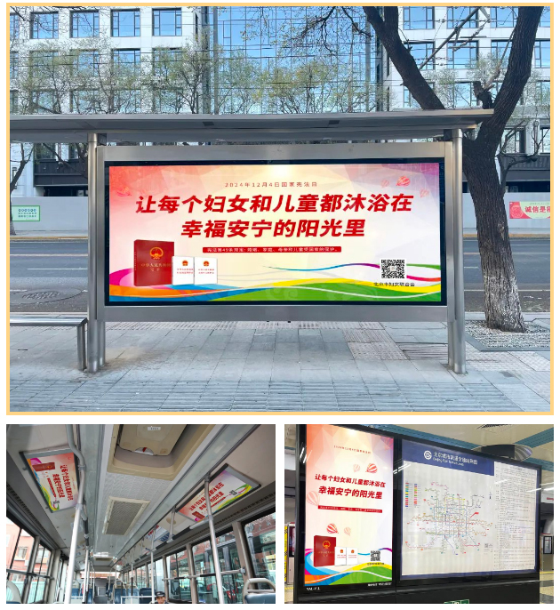 On National Constitution Day, December 4, the BWF launched a citywide campaign to promote constitutional awareness. Posters with messages such as “Let every woman and child bask in the sunshine of happiness and peace” were displayed in high-traffic areas, including subway stations, bus stops, and community elevators. Key legal provisions, such as “Marriage, families, mothers, and children shall be protected by the state,” were featured on more than a hundred electronic screens and thousands of themed posters, highlighting the legal protection in place for women and children, raising public awareness of constitutional rights.