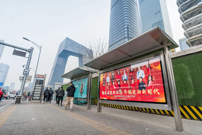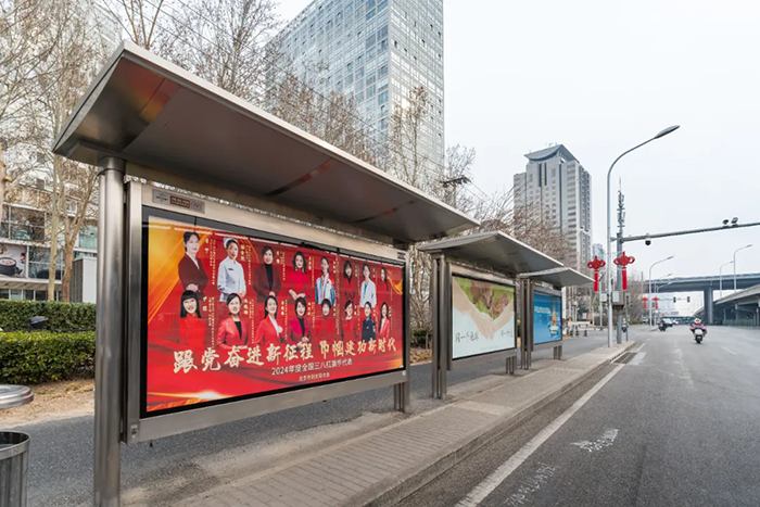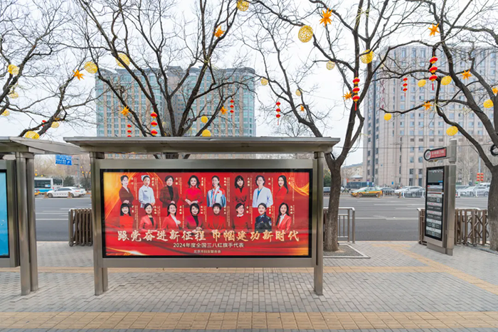 The public service posters, themed “Advancing with the Party on the New Journey, Women Achieving Success in the New Era,” have been displayed at high-traffic bus stops in areas such as Dongdan, Xidan, Guomao, and Sihui, showcasing the exemplary contributions of these outstanding women.