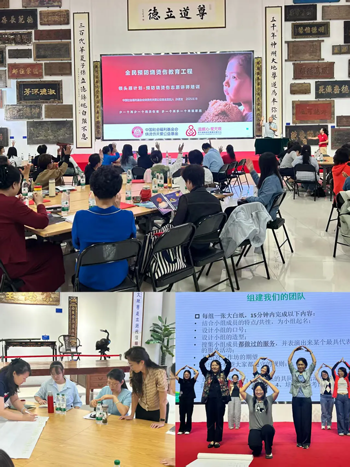 The training also incorporated interactive teaching formats, such as group roundtable dialogues and workshop-style discussions. These activities encouraged participants to share experiences and enhance their skills through a process of “listening, reflecting, practicing, and observing.” This approach helped them gain a deeper understanding of the methods and techniques for supporting women, children, and families. In addition, Sun Bianyou, Founder and Director of the Burn and Scald Care Fund under the China Social Welfare Foundation, delivered a keynote report on the National Burn and Scald Prevention Education Initiative. Meanwhile, Zhang Daiyu, President of the Beijing Aiwenhen Burn Rehabilitation and Care Center, shared insights from related public welfare projects. These sessions highlighted the significance of raising public awareness about burn prevention and first aid education to enhance the protection of lives and well-being.