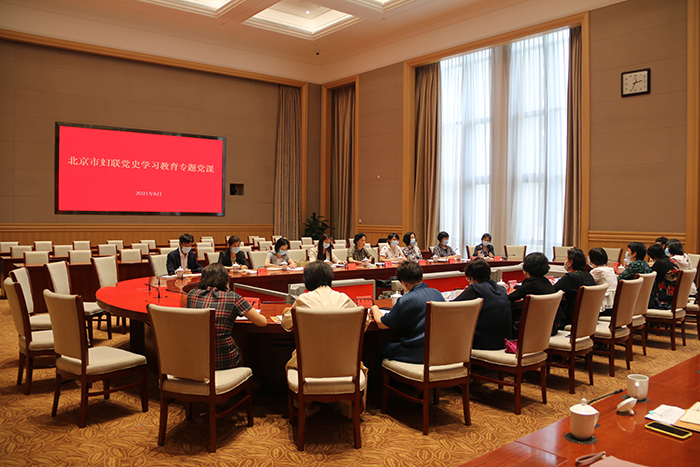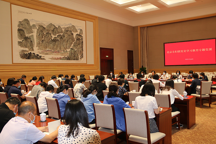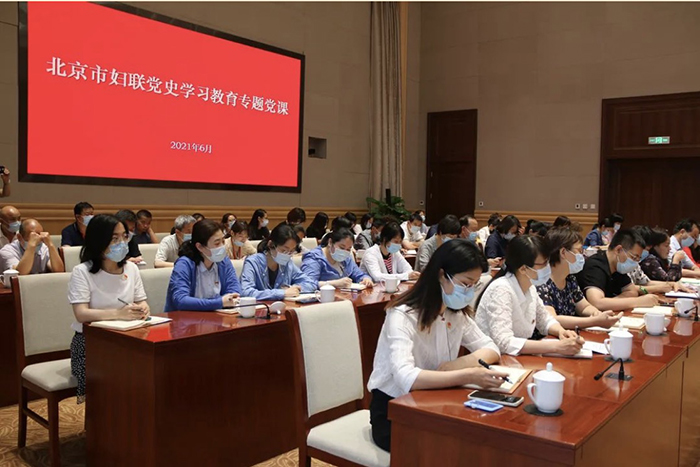 Members of Beijing Women's Federation (BWF), leaders and heads of related departments and public institutions attend the class on Party history learning and education. [Beijing Women's Federation]