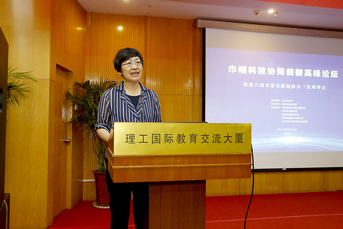 Date:2021-7-23 9:48:49 Views:In response to the requirements of the All-China Women's Federation (ACWF) in advancing women's scientific and technological innovation, and giving full play to the role of women professors in Beijing, a forum on promoting women's scientific and technological innovation, guided by the Beijing Women's Federation (BWF) and organized by the Capital Women Professors' Association (CWPA), was held at the Beijing Institute of Technology (BIT) on July 15. Women academicians, Cheung Kong Scholars, representatives of outstanding youth, and nearly 70 delegates from more than 50 colleges and universities, all of which are CWPA members, attended the forum to discuss the development of technological innovation.