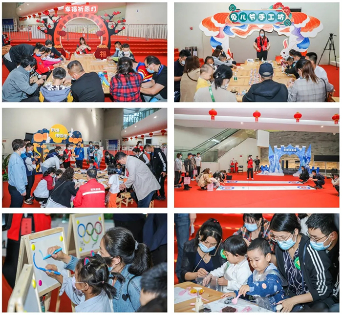 An Olympic-themed graffiti wall was set up to show paintings produced through parent-child cooperation. A curling competition was held to popularize the game to families and give a warm-up to the Beijing 2022 Winter Olympics. Diverse workshops for moon cakes, blessing lanterns and Tu'er ye, also known as the rabbit god, a traditional toy made from mud for the Mid-Autumn Festival, were held to help families learn about the origin, legend and customs of Mid-Autumn Festival.