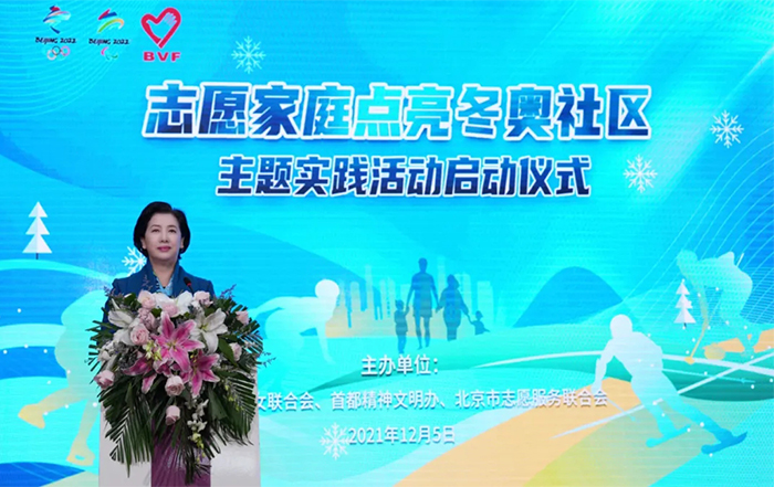 Zhang delivered a speech on behalf of the organizers. She expressed greetings to volunteers and volunteer families on International Volunteer Day for Social and Economic Development, and gratitude to departments that have supported women's volunteer work in the capital. She pointed out the importance of volunteers by quoting former IOC President Juan Antonio Samaranch.