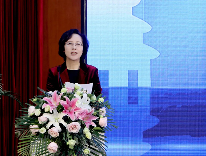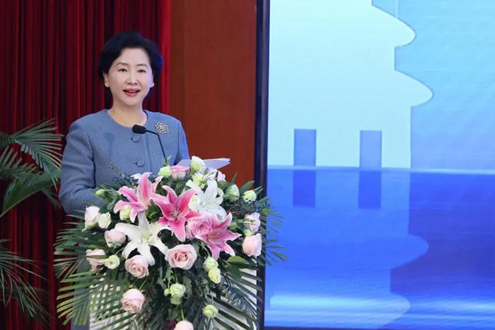 Wu Haiying, Vice-President and Member of the Secretariat of the All-China Women's Federation (ACWF), delivers a speech.