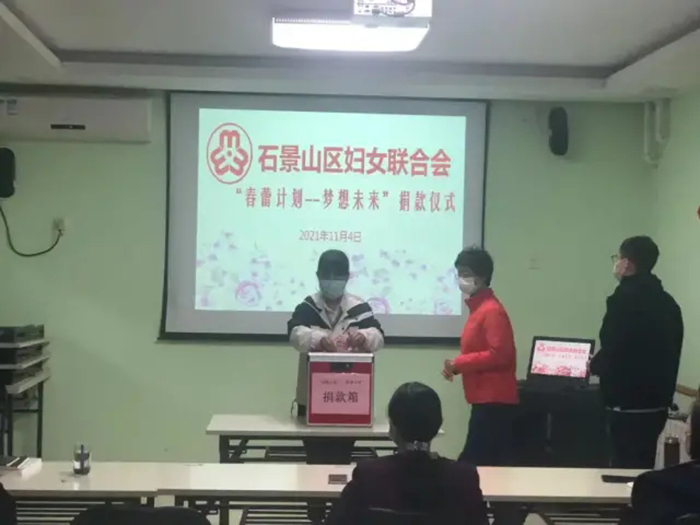 The women's federation of Shijingshan district organizes a donation for the Spring Bud Project.