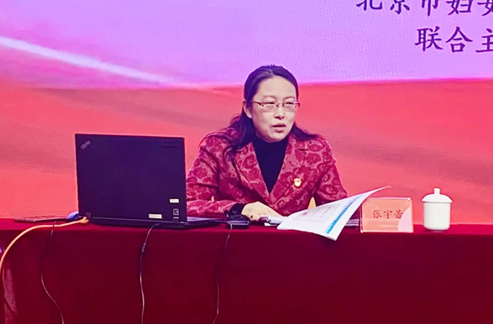 Zhang Yajun, Secretary of the Leading Party Members' Group and President of Beijing Women's Federation (BWF), delivers a speech at the training.
