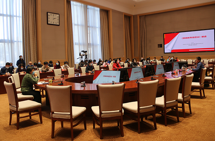 According to the meeting, the law on family education promotion embodies the spirits of General Secretary Xi Jinping's important expositions on families, family education and family traditions and elevates family development from "house affairs" to important "state affairs" in the new era. Intending to give play to women's federations' advantages, the document clarifies women's federations' legal responsibilities and gives directions of their work related to family.