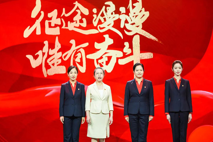 The chapter Loyalty and Achievements opened with a video about Li Huanying, a National March 8th Red-banner Holder, who is still hale and hearty at the age of 100 and struggles on the front line of leprosy prevention and treatment research. Li dedicates her life to the cause of improving people's health; Sun Qiwei, also a National March 8th Red-banner Holder, shared her story of creating a course for the Party history learning and education. The state guest service team of the National Convention Center, as a National March 8th Red-banner Collective, told their story of providing high-quality services for the Beijing 2022 Olympic Winter Games; and Liu Li, named one of the "most beautiful women workers in the capital," talked about her work of the research and development of athletes' outfits to help improve the level of China's national teams in winter sports.