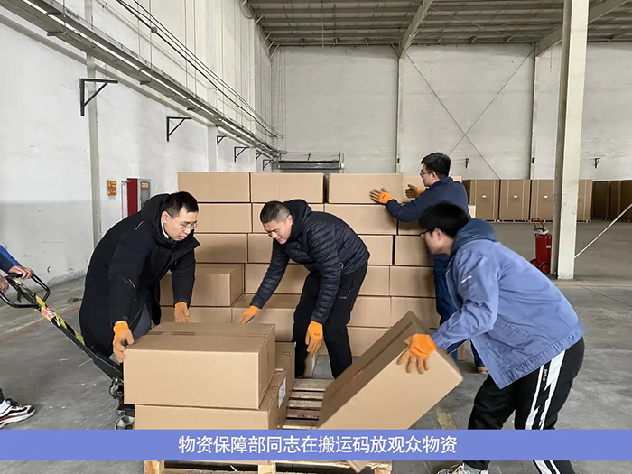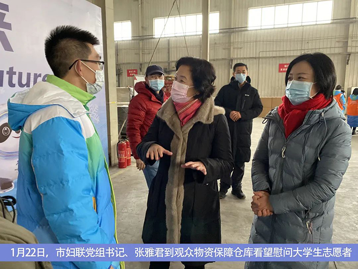 Zhang Yajun, Secretary of the Leading Party Members' Group and President of the BWF, visits volunteers at a warehouse.