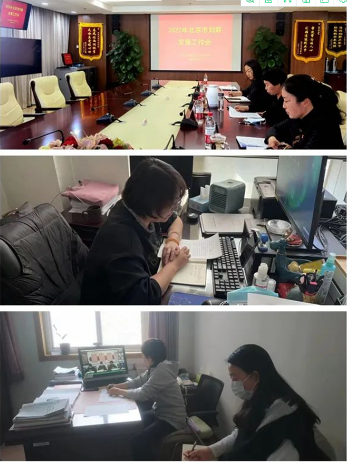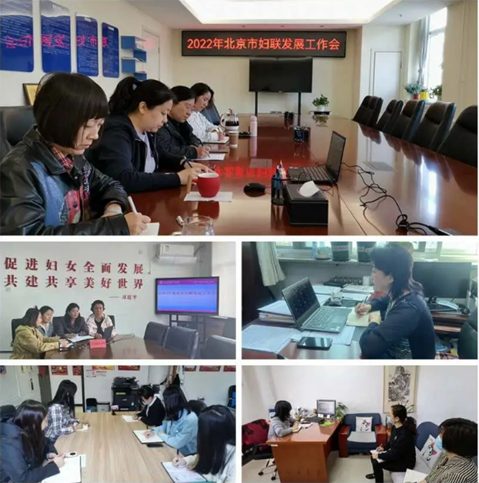 Date:2022-4-20 15:50:02 Views:Beijing Women's Federation (BWF) held a meeting on women's development virtually on April 14 to review work in 2021 and deploy work for 2022. Zhou Jing, first-level inspector of the BWF, delivered a speech at the main venue. Over 50 people, including presidents and directors of women’s development departments of 16 district-level women's federations attended the meeting online.