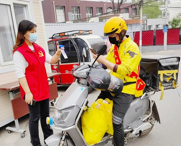 Staff workers from the Women's Federation of Huairou District have taken part in the community-level epidemic control and prevention work, helping supervise all people in registering their information, checking temperatures and health codes at checkout points.