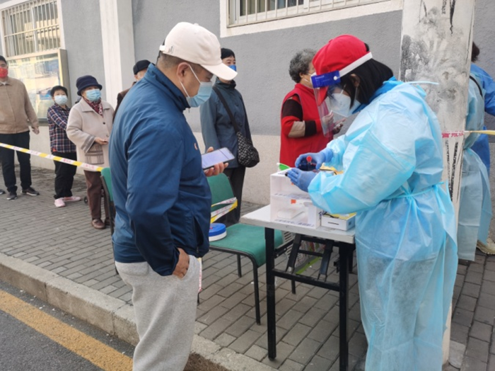 Women volunteers in all villages and residences of Pinggu District have worked with health workers to help the elderly and patients take nucleic acid tests at home.