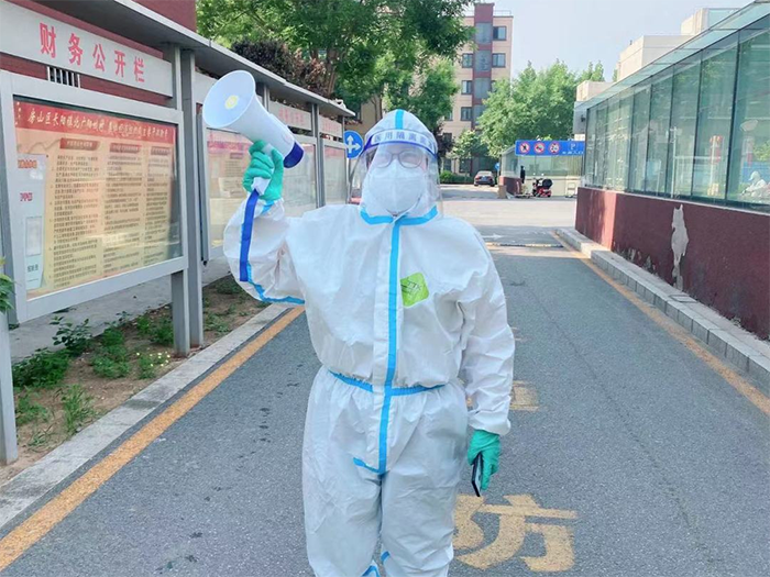 Zhang Lirong is a newly-elect executive member of the women's federation of Beiguangyangcheng Village. Zhang has been an all-rounder at the mass nucleic acid testing sites in the village since April 26. She became busier in the organization of the mass nucleic acid testing and the delivery of daily necessities in a protective suit after their village was designated as a closed-off management area on May 13.