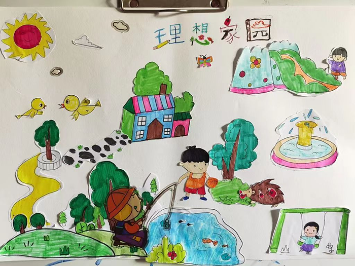 Prior to the opening of the live-stream activity, organizers uploaded a set of cartoon pictures of infrastructural facilities in residential communities, allowing participants to download and print them in advance. Under the guidance of teachers, children drew pictures of ideal cities in their mind. The cities emerging from their pens were colorful and dynamic.
