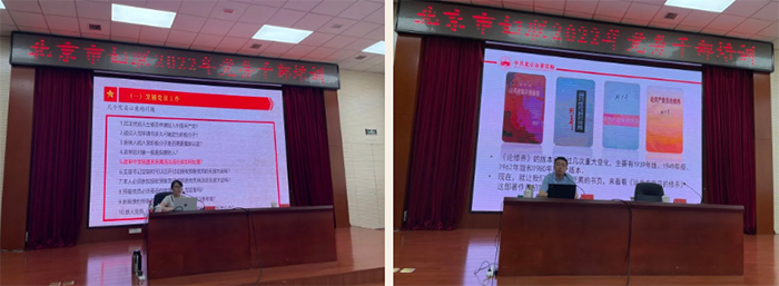 At the invitation of BWF, Sun Ning, a researcher from the Beijing Party-building Research Base affiliated with the Party School of the Beijing Municipal Committee of the CPC, explained to trainees about the original aspiration of Party members and their responsibilities in the new era through an interpretation of the life journey of Liu Shaoqi (1898-1969), a late Party and state leader and interpretation of Liu’s book on how to be a qualified communist. Jiang Jieni, a worker from the organization department of the working committee for departments directly under the Beijing Municipal Party Committee, gave a lecture on fostering a group of high-caliber Party members and cadres and improving the quality of Party-building affairs from the perspectives of the admission of new Party members, the education and management of Party members, the implementation of Party organizations’ regular activities, care and assistance to Party members, the collection and usage of Party membership fees.