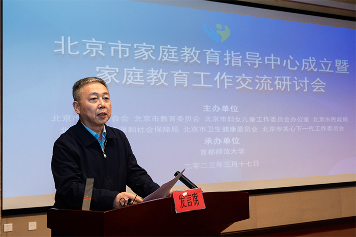 In his remarks, Meng Fanhua, Party secretary of Capital Normal University, extended congratulations to the Beijing Family Education Guidance Center on its establishment. He said the university will do its best to push for the building of the municipal-level family-education-guidance center and the innovative development of the city's family education work under the guidance of the Beijing Municipal Family Education Guidance Commission.