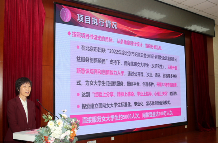 During the event, BWF reviewed its last year’s action for supporting public service projects for women, children and families. In 2022, the federation selected 11 projects to which it offered funds, professional guidance and technical counseling, and monitored the projects’ implementation. Among the projects, some were designed to raise women college students' enthusiasm for scientific and technological innovation, and some have helped children to take part in community governance and cultivated children’s interest in science and volunteering spirit. Other projects carried out safety education for girls, extended assistance to single mothers, disseminated advanced childcare philosophies, and enhanced the knowledge and skills of volunteers. A total of 429 activities have been held through the 11 projects, benefiting 11,000 people directly and 1.2 million people indirectly.