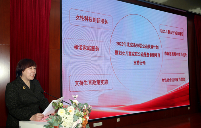 Date:2023-4-28 9:22:41 Views:Beijing Women's Federation (BWF) held a ceremony on April 27 to display the achievements of public service projects for women, children and families that were implemented with its support in 2022 and to announce its plan for collecting and sponsoring new projects this year. The ceremony was held at Beijing Public Service Center for Women and Children.