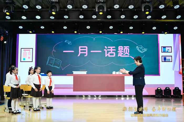 Lu Yongli, principal of Beijing No.2 Experimental Primary School, gives a demonstration class at the ceremony.