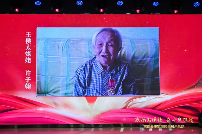 Xu Zihan, great-grandmother of Wang Hou, is a veteran who took part in the Battle of Shangganling in the War to Resist US Aggression and Aid Korea (1950-53). She conveyed great expectations toward youth via video link at the ceremony.