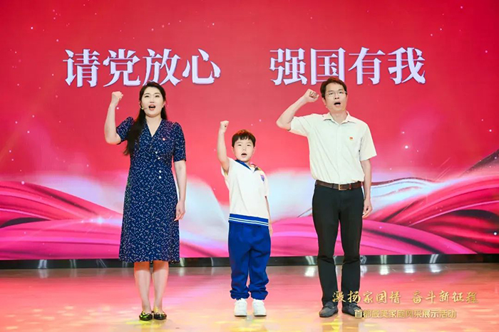 Wang Hou, 7, shared with attendees his understanding of revolutionary stories, the founding and development of the CPC, and loyalty to the Party. Hou Yun, mother of Wang Hou, has integrated heroic deeds of martyrs with family education and helped the boy learn more about revolutionary stories and traditions since his childhood. Wang Dahu, father of Wang Hou, has set up an example for the boy by serving the 2022 Beijing Winter Olympics and acting as a volunteer teacher for children from mountainous areas.