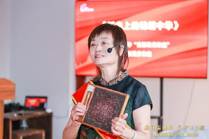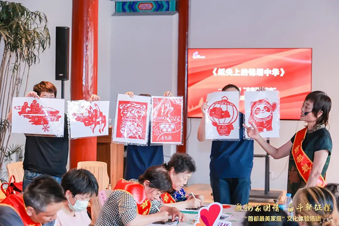 She guided other participants to cut the Chinese character “福” (Fu), which refers to happiness in English, expressing best wishes to the families through the traditional art.