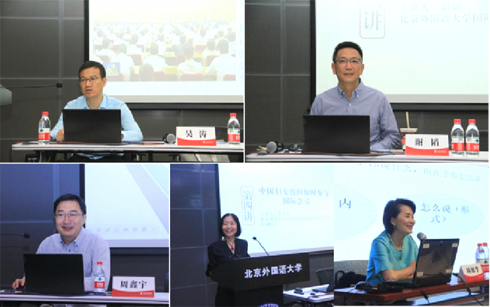 Wu Tao, deputy director of the planning department of the Beijing Municipal Foreign Affairs Office, explained to attendees about the essence of Xi Jinping Thought on Diplomacy and the achievements made by Beijing in becoming an international exchange center, and underscored the direction of civil diplomacy in adhering to China's overall security outlook and advancing the capital city's high-quality development. Xie Tao, dean and professor of the BFSU School of International Relations and Diplomacy, talked about the development trend of China-US relations and their influence on the international landscape. Zhou Xinyu, vice-dean and professor of the BFSU Academy of Regional and Global Governance, spoke about the importance of women-related issues in global governance and expounded on the usefulness of putting oneself in the other's shoes in cross-cultural communication with specific cases. Li Youwen, vice-dean of the BFSU Academy of Regional and Global Governance, related her working experience as an assistant to the Director-General of the United Nations Educational, Scientific and Cultural Organization (UNESCO) to share with trainees about the rules and methods adopted by international agencies in solving difficulties and forge consensus, and talk about the competence relevant personnel should possess when voicing their views at international conferences. Zhou Jiali, an associate professor with the Department of Diplomacy and Foreign Affairs Management at China Foreign Affairs University, lectured participants on international etiquette in such scenarios as high-level foreign affairs reception and international meetings from the perspectives of speaking, behavior and clothing.