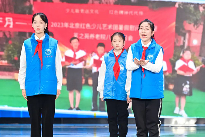 Wang Yuxiao and Wang Yuheng, two children from Fengtai district, joined Miao Changbao, an elderly person, to give a show based on stories of volunteer families. Member of the children’s art troupe from Hongdiezhijia Women and Children's Volunteer Services Promotion Center presented a recitation show.