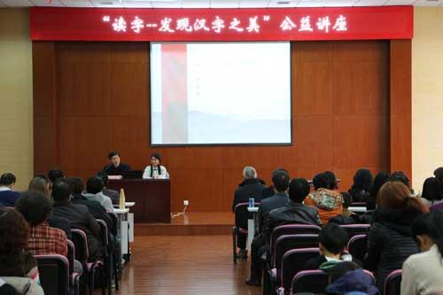 In the afternoon on Jan. 4, 2014, in multi-function hall of Beijing Women and Children Service Center, with an excellent Guqin Music, Flowing Water, washing the heart of each audience either domestic or overseas, Xie Feidong, author of Reading Chinese Characters, and Nie Hui presented the configuration secret, phonological features of Chinese characters and deep cultural connotation contained in them by the form of Guqin play, Chinese characters parsing, and painting and calligraphy appreciating, and led the audiences to a way of finding the beauty of Chinese characters, and enjoying the charm of Chinese traditional culture.