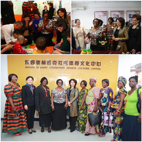 The delegation visited the "Children's Home" –Dongsiyi Future Baby Gym of Community, also accompanied with Geng Hailing - China's Ambassadress to Zambia, Lu Yamin - Deputy Director of International Liaison Department of the All-China Women's Federation, Director of West Asia and Africa Division of International Liaison Department of the All-China Women's Federation, Director of Dongcheng District Women's Federation of Beijing Municipality, Director of Dongcheng District Dongsi Street and Community, Director of Beijing Women's International Center, etc.