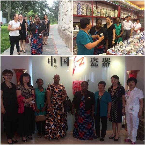 Zhou Zhijun, vice chairwoman of Beijing Women's Federation, extended a warm welcome to the delegation led by Mrs. Mongella on behalf of Beijing Women's Federation, and accompanied Mrs. Mongella on the visit to the United Nations Fourth World Conference on Women Huairou Memorial Park. Zhou Zhijun explained to Mrs. Mongella that 2015 is to commemorate the 20th anniversary of the World Conference on Women in 1995, and Beijing Women's Federation also held many diversified commemorative activities such as forums, exhibitions, performances, etc., to provide important help for development of women's career together. During the visit in Huairou District, the delegation led by Mrs. Mongella also visited Smart Lady Art Studio - Gaolianghe Painted Ceramic and Porcelain Factory.