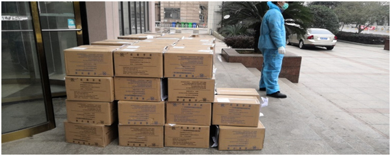 BWCDF-donated 500 boxes of disinfectant arrived in Hubei on February 3, 2020
