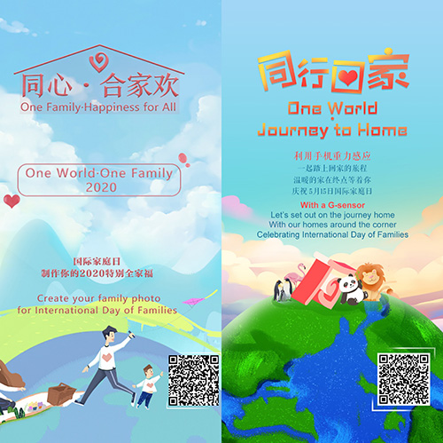 The activity also customized two games on H5 interactive pages to allow all members of afamily to participate, enjoying their time together. In the first game, One Family·Happiness for All, one can create a unique family photo with a special pattern for the International Day of Families; the second game,One World·Journey to Home, requires players to use the phone's gravity sensor to complete a maze challenge to arrive at "home" and receive wishes from families of different countries.