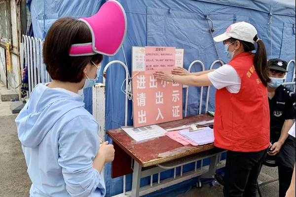 Members of the women's federations at all levels in Beijing are active in the household-based work of controlling the transmission of the virus. Such strict measures as body temperature-taking and offering a resident pass before entering have restarted.