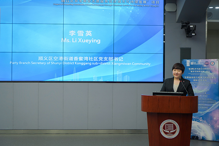 Representatives of the Beijing Women's Federation (BWF), the Beijing municipal committee of the Communist Youth League and the Beijing People's Association for Friendship with Foreign Countries, as well of universities, enterprises, communities and voluntary service organizations, voluntary service experts and overseas students in China participated in the event at BISU.