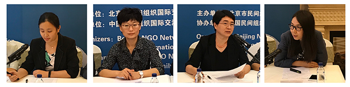(From left to right) Deputy High Commissioner for Human Rights Nada Al-Nashif, BWF Vice-President Chen Yanping, Vice-Chairman of the Beijing NGO Network for International Exchanges Dai Jianjun, and President of the Beijing International Peace Culture Foundation Li Ruohong address the meeting. [Beijing Women's Federation]