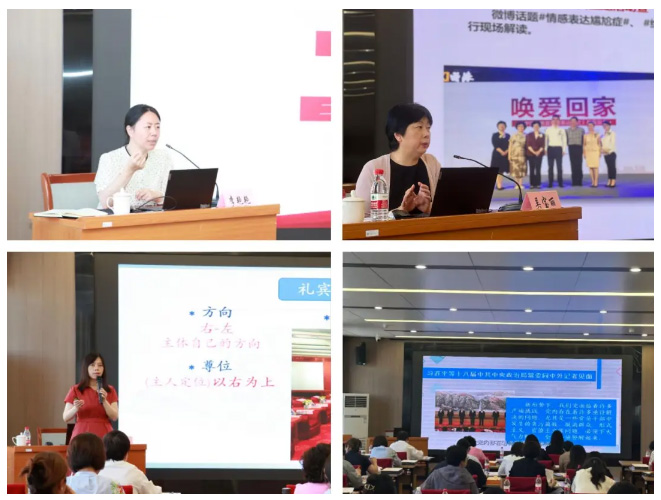 During the sessions, Li Yanyan, Professor and Doctoral Supervisor at University of Science and Technology Beijing, provided a systematic interpretation of the current key points in ideological work and strategies for managing online ideological work. Yuan Li, Dean of the School of International Education at the China Foreign Affairs University, gave a detailed explanation of the core principles and characteristics of diplomatic protocol and etiquette, as well as practical operational norms in specific international exchange scenarios. She also offered targeted guidance on service support for the bases’ participation in foreign affairs activities. Wu Baoli, Vice President of China Women’s Magazine, vividly shared methodologies and practical experience of telling the stories of Chinese women, and combined with specific cases from the Capital Women and Children’s Development Base to propose communication strategies aimed at enhancing international influence.