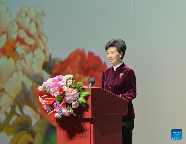 Chinese State Councilor Shen Yiqin addressed the event, calling on China's hundreds of millions of women to continue to write new splendid chapters in the new journey of building a great country and moving toward national rejuvenation.