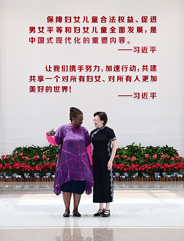 During their meeting, Huang noted Chinese President Xi Jinping pays high attention to women's cause and the work of women's federations, and Xi has made a number of important expositions in this field, leading to remarkable, historical achievements in Chinese women's development in the new era. Huang also noted Professor Peng Liyuan, wife of Chinese President Xi Jinping, cares about girls' and women's education. Peng has led by example, devoted a great deal of effort and made outstanding contributions to promoting girls' and women's education.