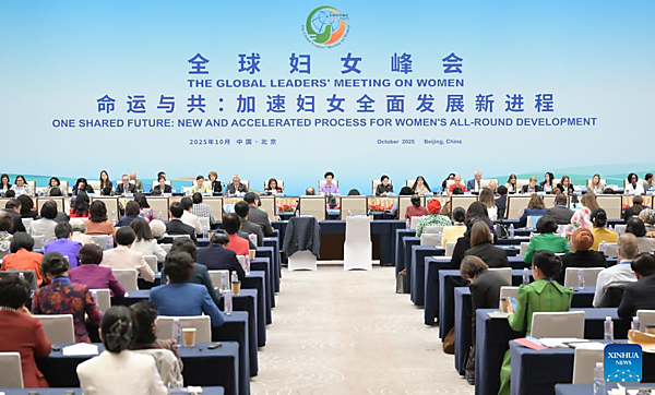BEIJING, Oct. 14 (Xinhua) — The Global Leaders' Meeting on Women concluded in Beijing on Monday afternoon, with Chinese State Councilor and All-China Women's Federation President Shen Yiqin and UN Under-Secretary-General and UN Women Executive Director Sima Bahous attending and delivering speeches.
