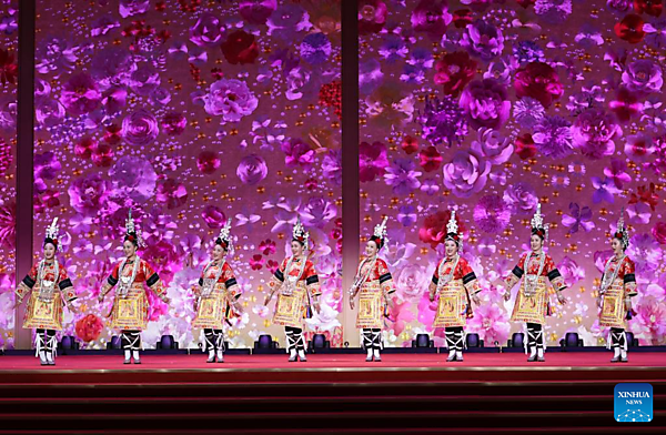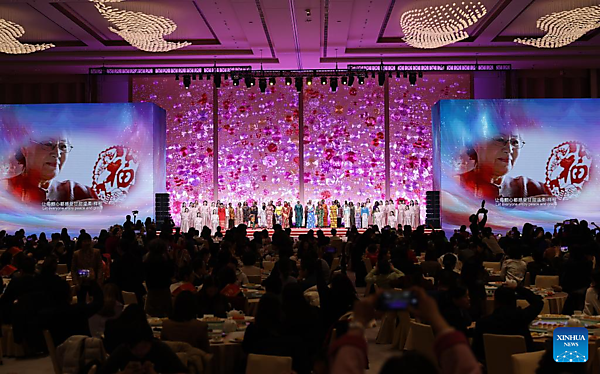 Performers perform during a reception for International Women's Day in Beijing, capital of China, March 6, 2026. The All-China Women's Federation held a reception here on Friday to mark International Women's Day, which falls on March 8. [Xinhua/Zhang Yuwei]
