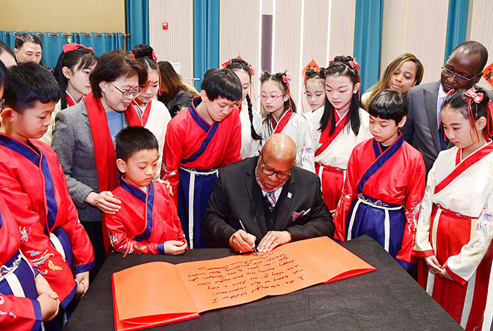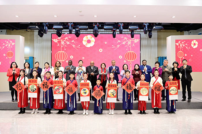 After their meeting, Huang and Francis wrote calligraphies and drew paintings with children at the China National Children's Center (CNCC) to welcome the coming Chinese New Year.