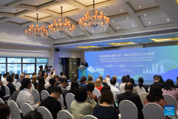 China is ready to work with the EU to strengthen policy dialogue, experience sharing and people-to-people exchanges, carry out cooperation in digital education and sister school building, and continuously increase the breadth and depth of women's participation in STEM education, so as to promote more equitable and inclusive education for women and girls around the world, said Shen.