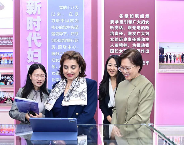 Bahous said she was grateful for China's warm and friendly welcome, and she spoke highly of the achievements in Chinese women's development, and of ACWF's work. During her visit to the museum, Bahous paid special attention to the exhibition showcasing the achievements in Chinese women's development in the new era, and to various exhibits that were used during the Fourth World Conference on Women.