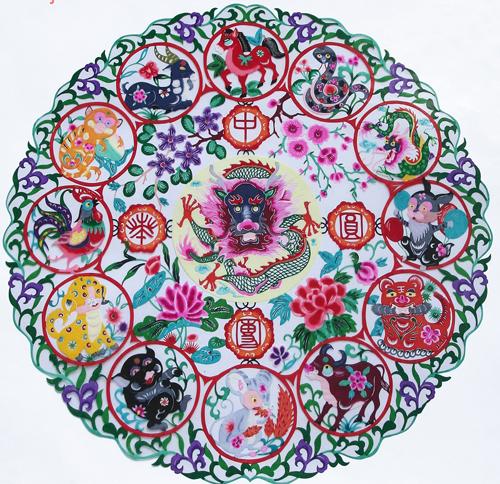 Color paper-cutting artwork features colorful, delicate detail with unique and distinctive character. All works are hand-made.